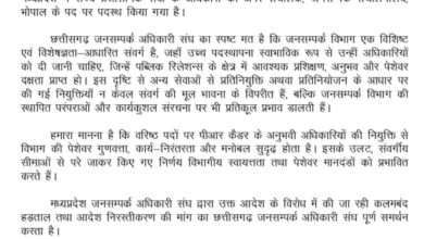 मध्य प्रदेश जनसंपर्क विभाग के अधिकारियों-कर्मचारी को मिला छत्तीसगढ़ का साथ… जानिए वजह…