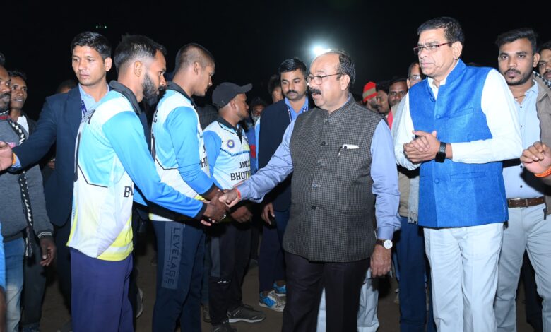 बिल्हा। उप मुख्यमंत्री अरुण साव मंगलवार को बिल्हा विधानसभा के ग्राम बरतोरी में जयहिंद क्रिकेट क्लब द्वारा आयोजित रात्रिकालीन क्रिकेट प्रतियोगिता के फाइनल मुकाबले में शामिल हुए। उन्होंने खिलाड़ियों एवं खेल प्रेमियों को संबोधित करते हुए कहा कि क्रिकेट आज सबसे लोकप्रिय खेलों में से एक है और गांव-गांव में हो रहे स्पर्धा युवाओं के खेल के प्रति बढ़ते जुनून को दर्शाते हैं। उन्होंने युवाओं से कहा कि वे प्रतिदिन मैदान में दो घंटा समय देकर पसीना बहाएं, इससे जीवन में सकारात्मक बदलाव आएगा। साव ने कहा कि प्रधानमंत्री श्री नरेंद्र मोदी के नेतृत्व में देशभर में खेलों और खिलाड़ियों को निरंतर प्रोत्साहन मिल रहा है और 2047 में विकसित भारत के संकल्प के साथ खेल के क्षेत्र में भी सिरमौर बनाने का लक्ष्य है।