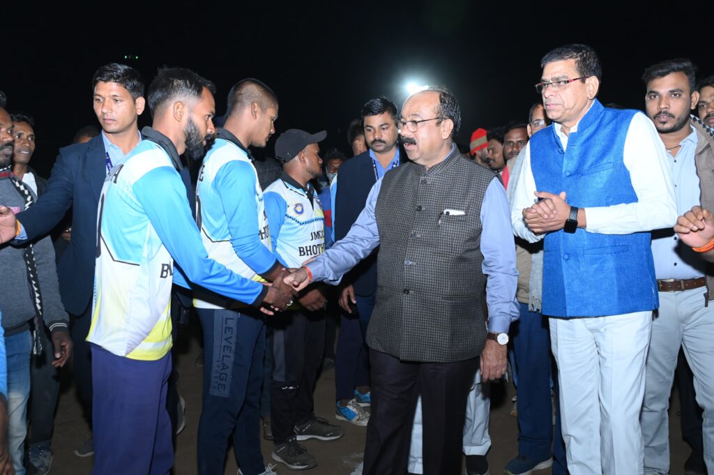 बिल्हा। उप मुख्यमंत्री अरुण साव मंगलवार को बिल्हा विधानसभा के ग्राम बरतोरी में जयहिंद क्रिकेट क्लब द्वारा आयोजित रात्रिकालीन क्रिकेट प्रतियोगिता के फाइनल मुकाबले में शामिल हुए। उन्होंने खिलाड़ियों एवं खेल प्रेमियों को संबोधित करते हुए कहा कि क्रिकेट आज सबसे लोकप्रिय खेलों में से एक है और गांव-गांव में हो रहे स्पर्धा युवाओं के खेल के प्रति बढ़ते जुनून को दर्शाते हैं। उन्होंने युवाओं से कहा कि वे प्रतिदिन मैदान में दो घंटा समय देकर पसीना बहाएं, इससे जीवन में सकारात्मक बदलाव आएगा। साव ने कहा कि प्रधानमंत्री श्री नरेंद्र मोदी के नेतृत्व में देशभर में खेलों और खिलाड़ियों को निरंतर प्रोत्साहन मिल रहा है और 2047 में विकसित भारत के संकल्प के साथ खेल के क्षेत्र में भी सिरमौर बनाने का लक्ष्य है।