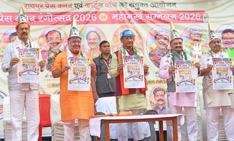 रायपुर : मुख्यमंत्री श्री विष्णु देव साय आज रायपुर प्रेस क्लब द्वारा आयोजित होली मिलन समारोह “रंगोत्सव” एवं “महामूर्ख सम्मेलन 2026” में शामिल हुए। इस अवसर पर मुख्यमंत्री ने प्रदेशवासियों को होली की शुभकामनाएँ देते हुए कहा कि होली केवल रंगों का त्योहार नहीं है, बल्कि यह आपसी प्रेम, सद्भाव और भाईचारे को सुदृढ़ करने का पावन अवसर भी है। यह पर्व हमें छोटी-छोटी अनबन और गिले-शिकवे भुलाकर नए सिरे से संबंधों को मजबूत करने की प्रेरणा देता है।