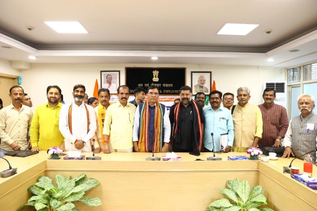असंगठित क्षेत्र में कार्यरत 15 अखिल भारतीय संघों के प्रतिनिधियों और बीएमएस के अखिल भारतीय उप महासचिव श्री सुरेन्द्र कुमार पाण्डेय के नेतृत्व में 32 सदस्यीय प्रतिनिधिमंडल ने 7 नवंबर 2025 को माननीय मंत्री जी के साथ मुलाकात की और एक संयुक्त मांगपत्र सौंपा। सभी महासंघ विभिन्न क्षेत्र के श्रमिकों का प्रतिनिधित्व करते हैं, जिनमें मत्स्य श्रमिक, वन श्रमिक, बीड़ी श्रमिक, कृषि श्रमिक, बागान श्रमिक, ठेका एवं आउटसोर्सिंग श्रमिक, घरेलू श्रमिक, रेहड़ी-पटरी वाले, निजी मोटर परिवहन श्रमिक, प्लेटफार्म वर्कर्स, आंगनवाड़ी कार्यकर्त्ता, आशा कार्यकर्त्ता, मध्याह्न भोजन श्रमिक, एनएचएम और 108 एम्बुलेंस श्रमिक, निर्माण श्रमिक और ईएसआईसी अस्पतालों के कर्मचारी शामिल हैं