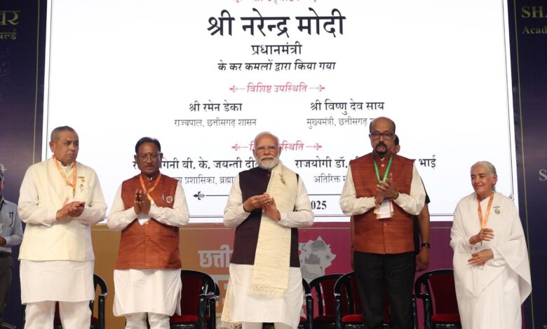 PM Modi addresses the Brahma Kumaris at the inauguration of Shanti Shikhar Meditation Centre in Chhattisgarh